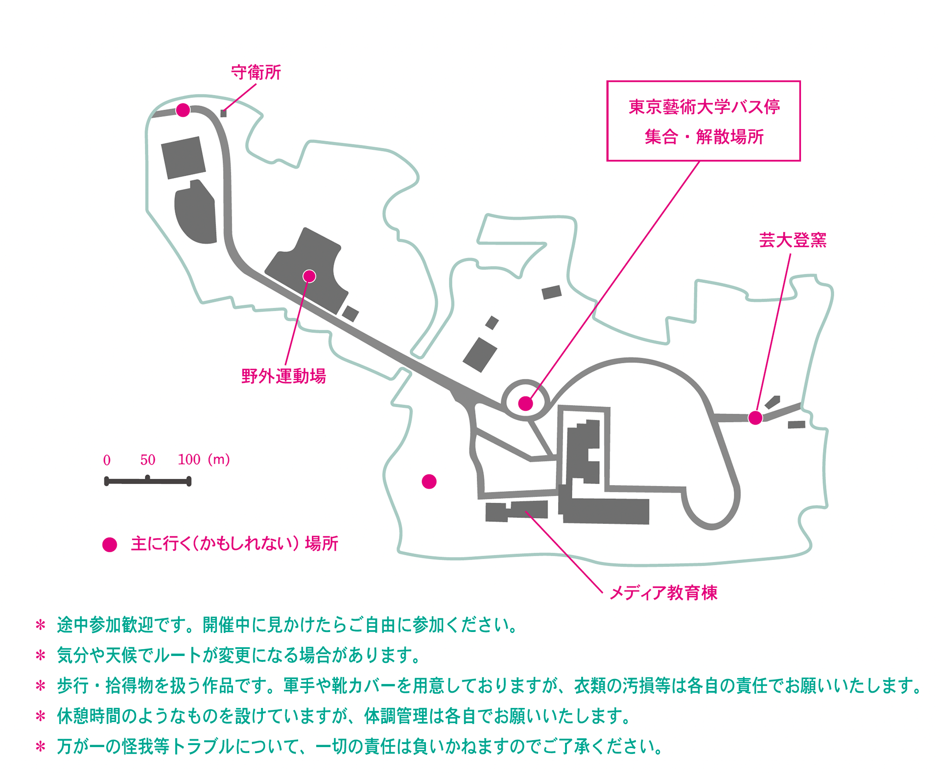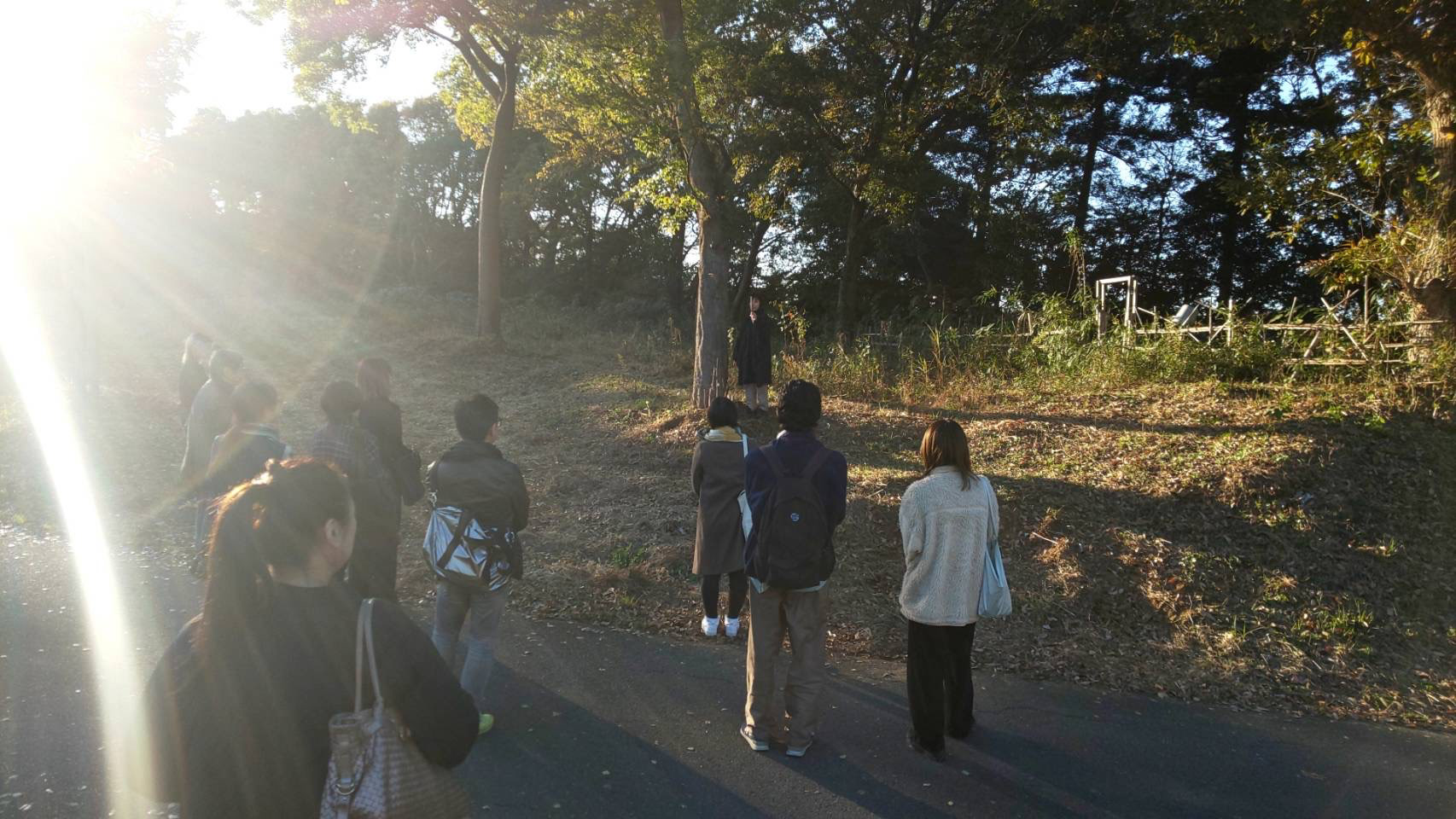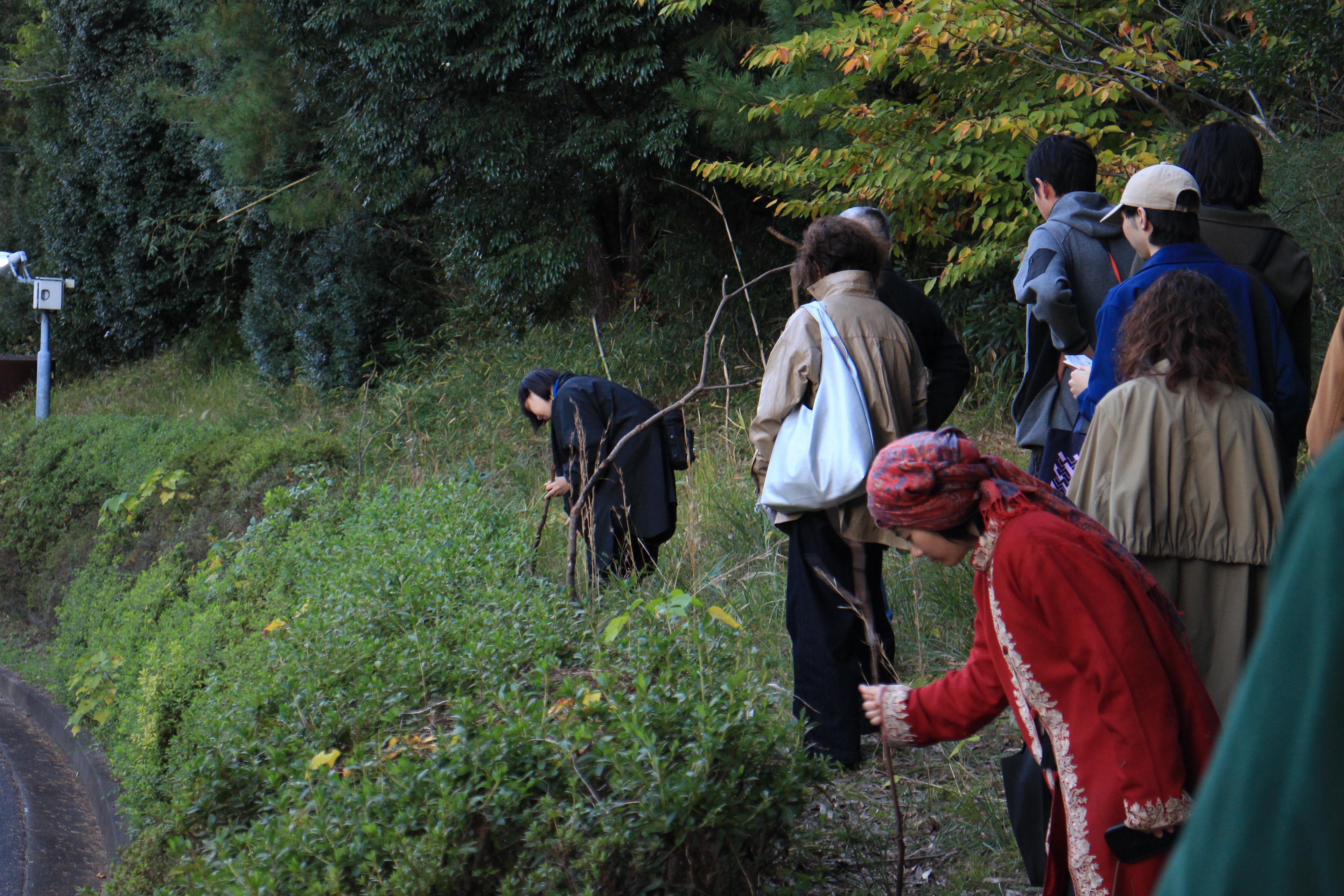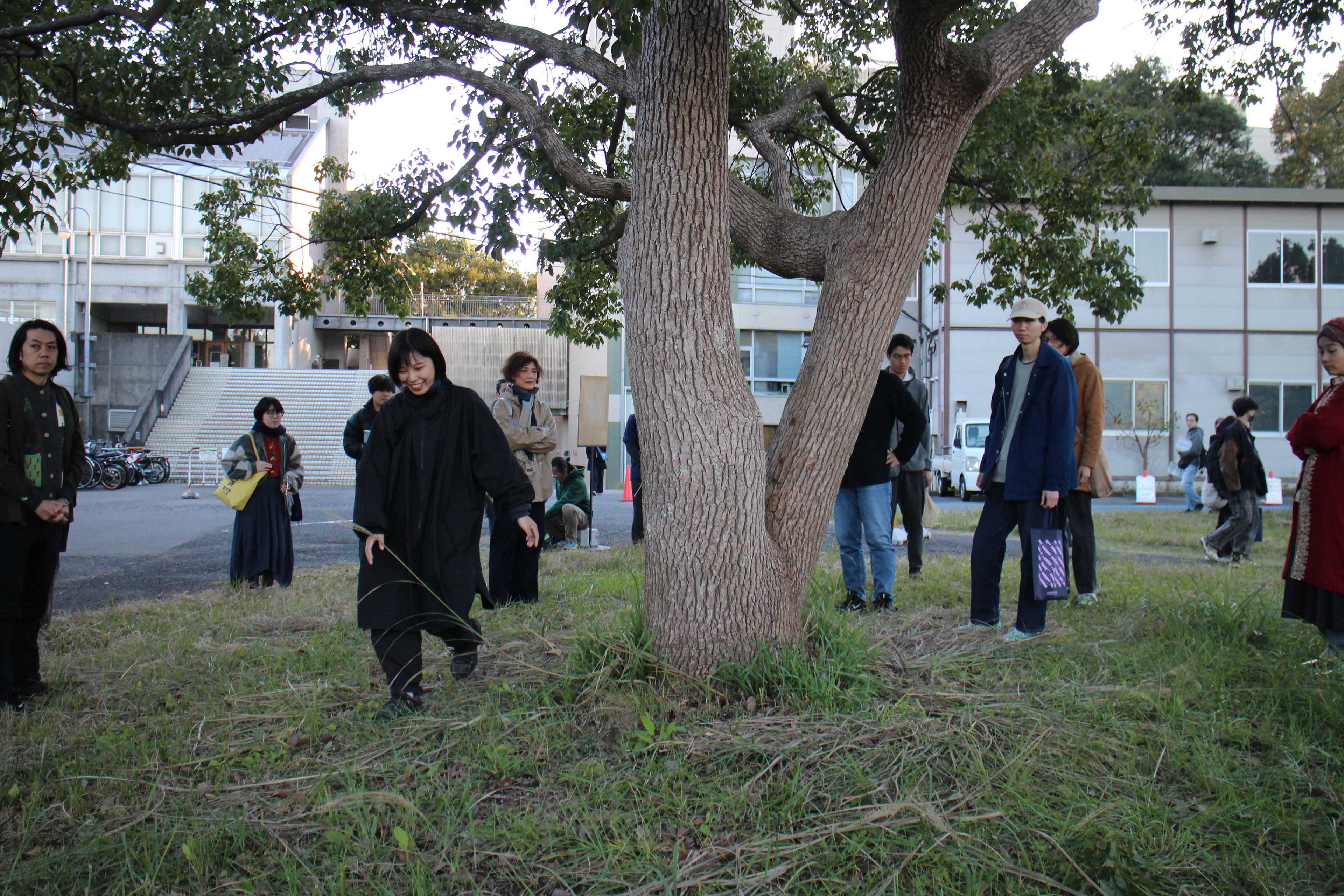 This work is born from my personal experiences: discovering the "Toride Slope Enthusiasts" signpost while walking in Toride, interviewing and forming relationships with them, traveling to Uganda, digging up tree roots, and other subjective encounters. I share these narratives while participants walk alongside me, listening to my stories. Then, as an action linked to these episodes, they build "signposts" using branches and found objects. We walk as if tracing the surface of the Toride campus, following paths that few have traveled before.