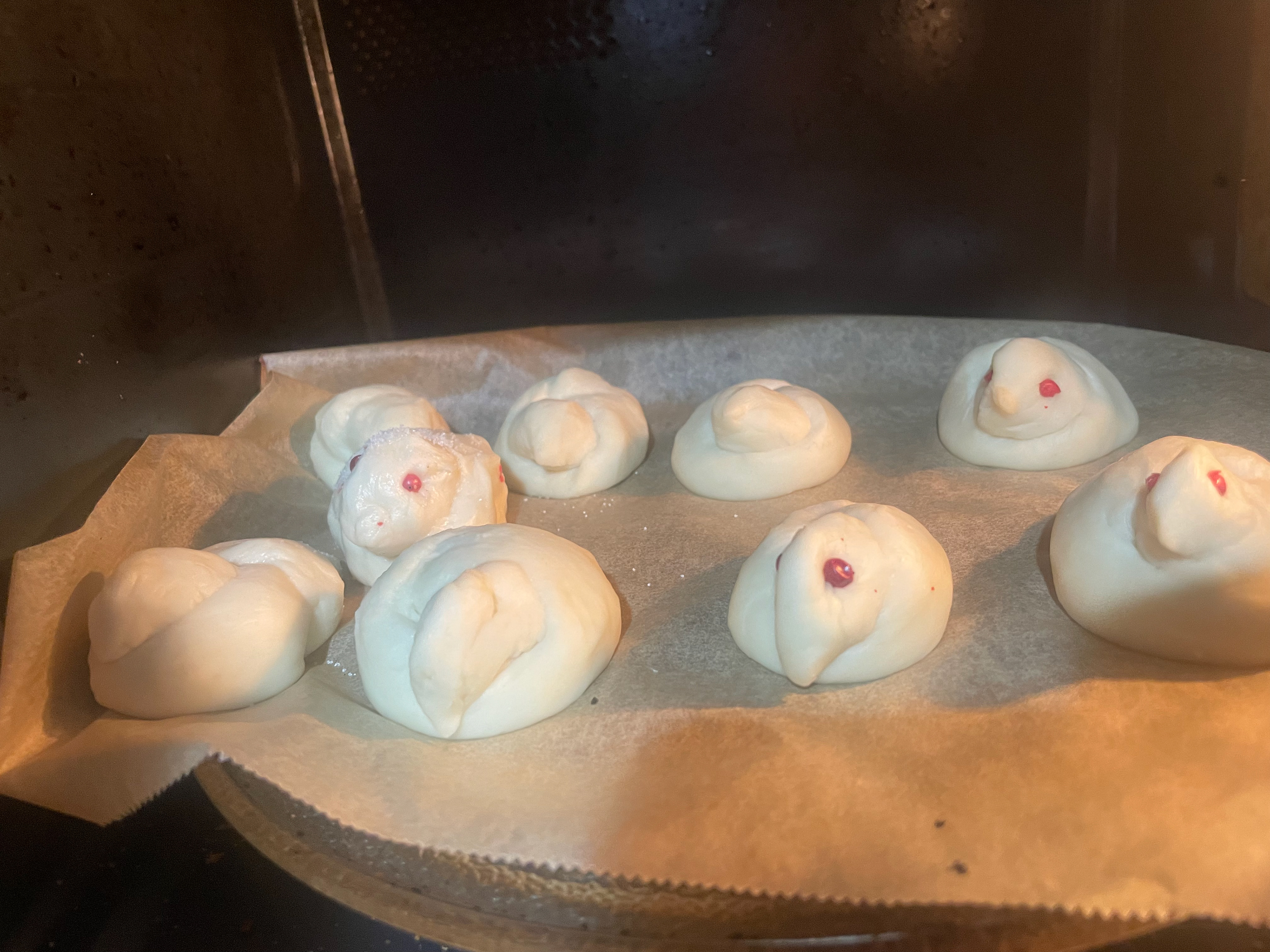 抹茶のスコーンと、疲れ果てながら作ったせいで致命的な失敗をしたけれども、それはそれ、といった感じで食べられるЖайворонок iз тiста(ジャイヴォロノク・イズ・ティスタ)を作っていった。これは春の訪れを祝う「ウクライナのひばりのパン」である。私が今ここにいること、この日の数日前に亡くなった最愛の犬サリーのこと(彼女は春生まれだ)、どこかで悲しい思いをしている子どもや大人のこと、巨大なアヒルを必死に作る私、全てが一つの大きな時間の中にいる。