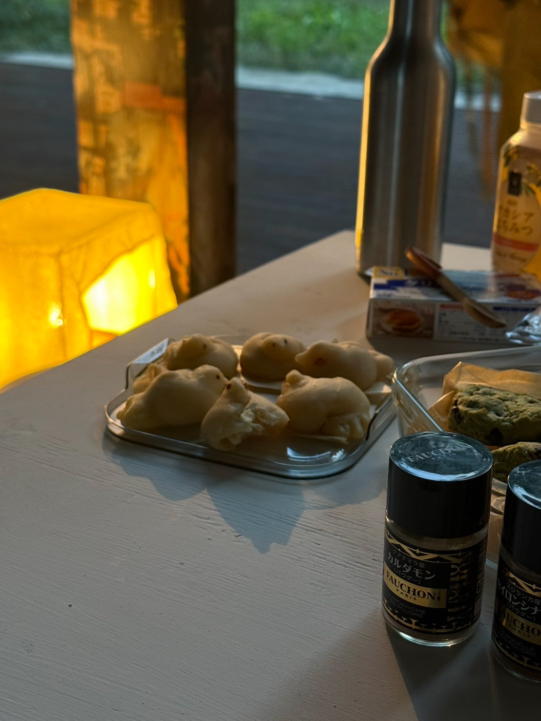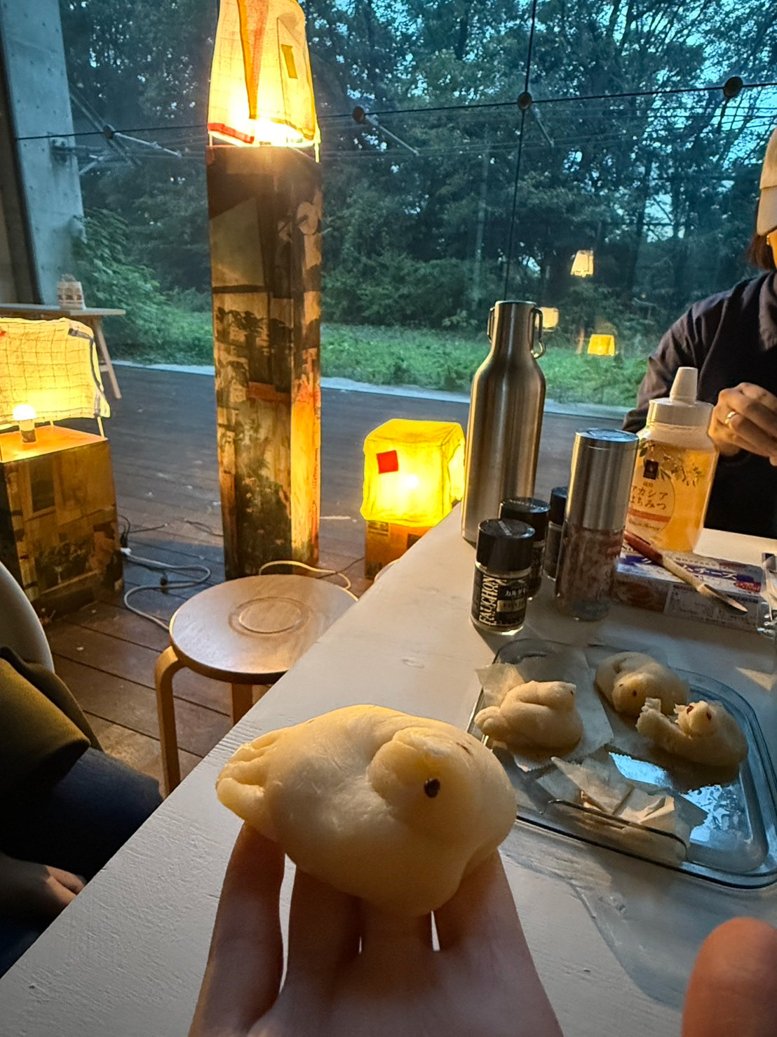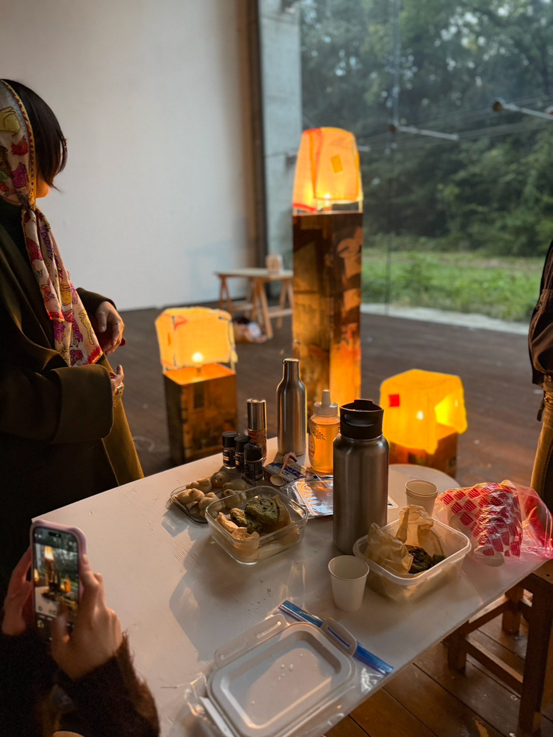 制作を手伝ってくれる人がたくさんいることに日々驚く。せめても、より良い環境で作品作りを共にできたらなと心から思っている。その一環として制作場所にケータリングを置いていた。私にとってはプロセスが楽しくなくてはやる意味がないし、人と時間を共有するならば特別な時間にしたい。そうした気持ちがどんどん華やかになって、アールグレイやカモミールのお茶を淹れてみんなで飲む時間などが増えてきた。